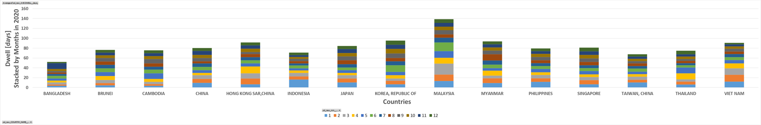 Data-Pivot-Chart-Bar-Vertical-Clustered-Stacked (by Legend) > y = Dwell [days] > x = Countries (Asia) > legend = 2020.mm