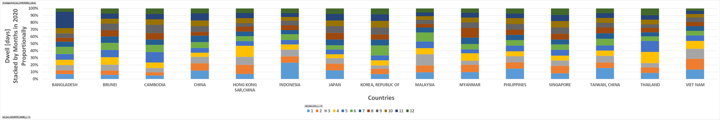 Data-Pivot-Chart-Bar-Vertical-Clustered-Stacked-Normalized (by Legend) > y = Dwell [days] > x = Countries (Asia) > legend = 2020.mm